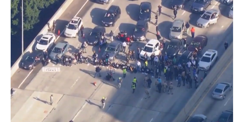 По словам властей, протест начался сразу после 9 часов утра на полосах движения в южном направлении возле выезда с 3-й улицы. Сотрудники Калифорнийского дорожного патруля отреагировали и начали брать протестующих под стражу около 10 часов утра.